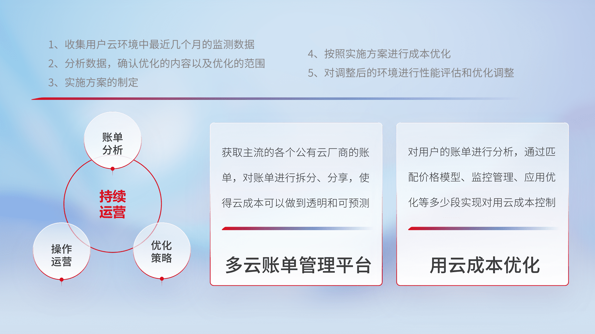 监控业务系统资源开销,,对资源的消耗精确计量,,,实现费用的透明化管理,,,,不断提升资源使用率,,,,调整资源购买方式,,,降低资源费用成本,,用云成本可预测、、、、用云费用可优化,,云资源配额有据可依。。